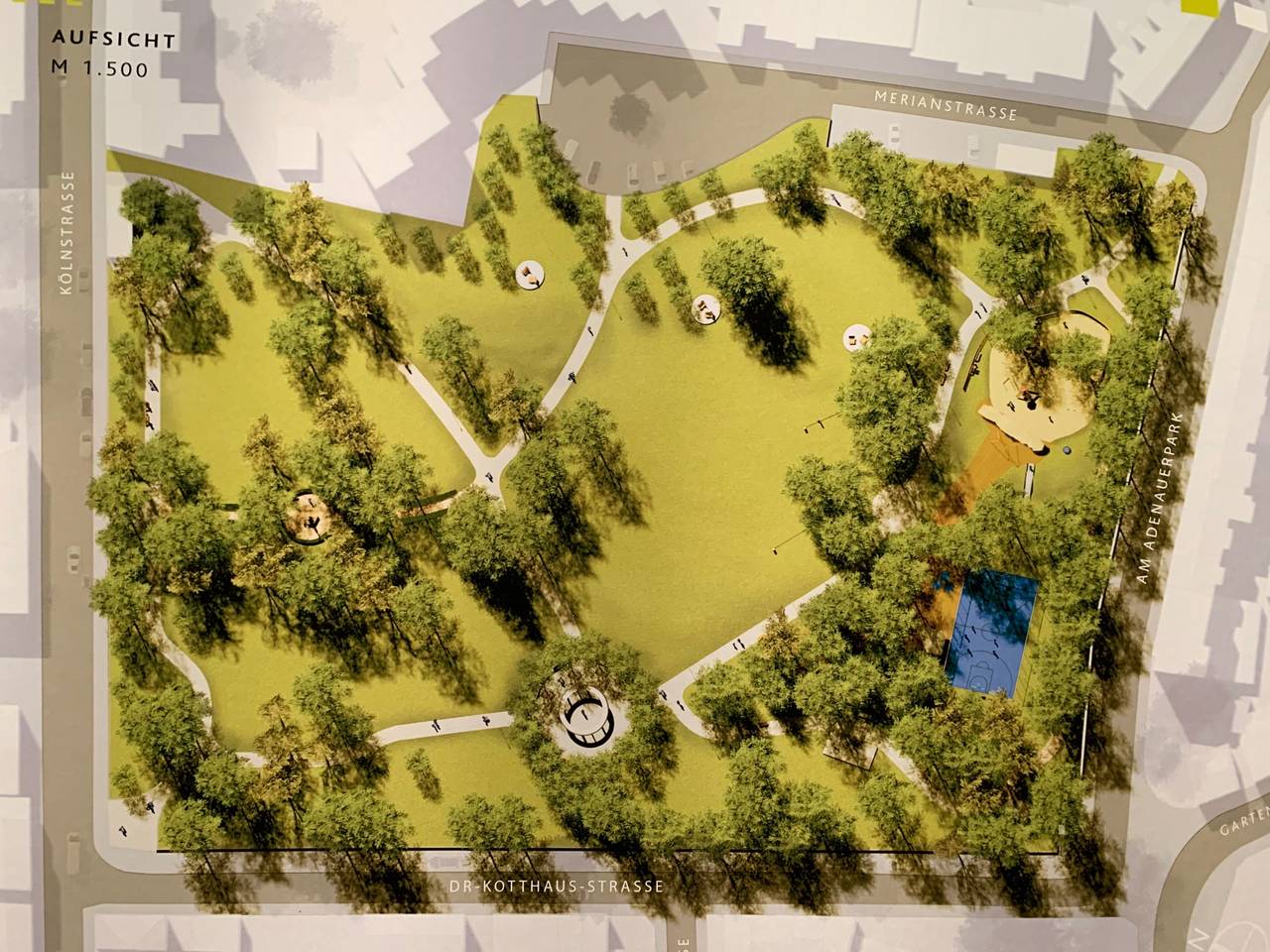 Der Park soll sich künftig in zwei Bereiche aufteilen; zum Einen geht es dabei um Ruhe und Erholung, zum Anderen um Sport und Spiel. Fast 2 Millionen Euro soll das Projekt kosten – das meiste Geld kommt aus Fördertöpfen. Die Stadt will den alten Baumbestand erhalten und zusätzlich 45 neue Bäume pfanzen. Nächstes Jahr um diese Zeit soll alles fertig sein. Die Umgestaltung des Adenauerparks ist Teil des Masterplans Innenstadt in Düren.