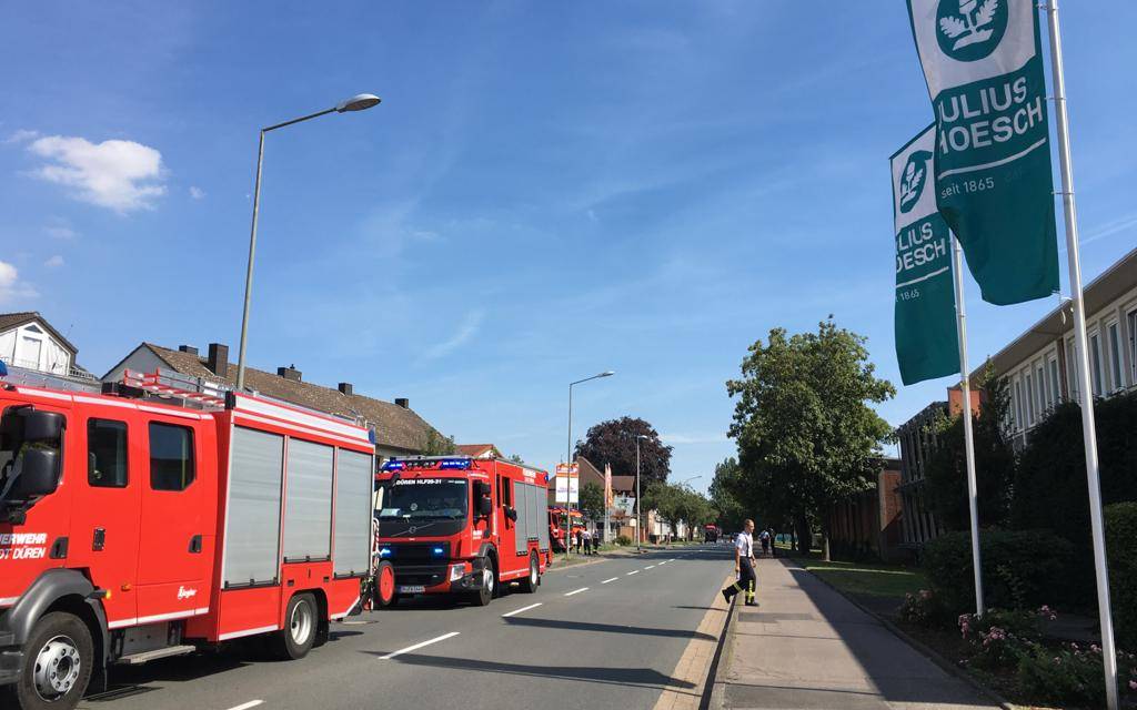 Die Feuerwehr ist am Mittwochnachmittag nach Düren-Hoven gerufen worden. Bei der Firma Julius Hoesch sind ätzende Dämpfe ausgetreten.