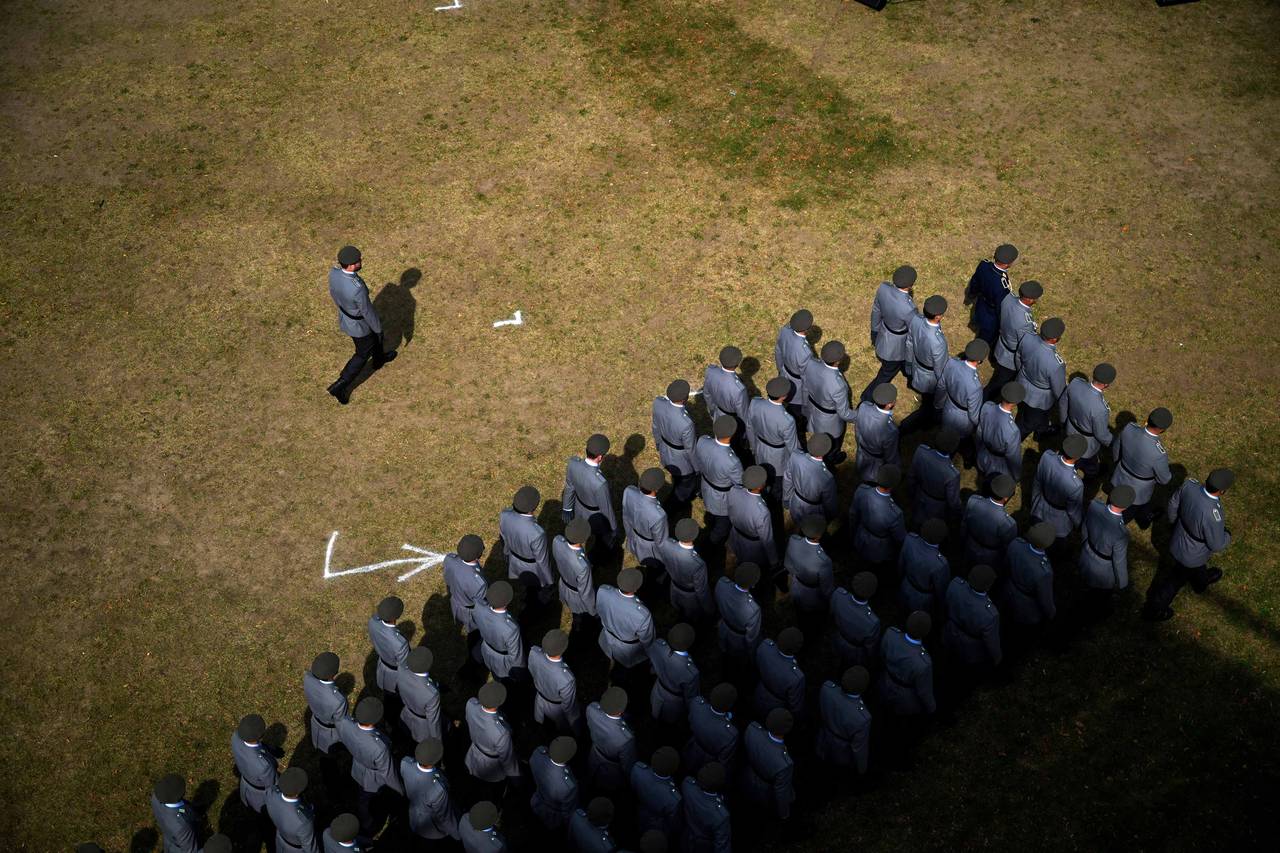Die Zeitenwende prägt weiterhin die politischen Debatten. Täglich befassen sich Medien mit Fragen der Wehrpflicht, der Fähigkeiten der Bundeswehr, der russischen Provokation. Wir sind nicht im Krieg, wir sind aber auch nicht mehr im Frieden, hat es der Kanzler zusammengefasst. In diese Zeit fällt das Gelöbnis der Bundeswehr vor dem Landtag. Die Vereidigung der Soldatinnen und Soldaten auf die Verfassung fand nicht mehr hinter Kasernenmauern statt, sondern vor dem Landtag. Dieser Ort dokumentiert: Die Bundeswehr ist eine Parlamentsarmee, verwurzelt in der Gesellschaft, sie steht ein für uns alle. Das Bild ist ein beeindruckendes Beispiel dafür, wie Pressefotografie im Einfachen das Außergewöhnliche sichtbar machen kann. Der Wechsel der Perspektive zeigt die abstrakte Ordnung des Militärs. Doch inmitten dieser strengen Ordnung steht ein einzelner Soldat, außerhalb der Formation. Diese bewusste Gegenüberstellung von Kollektiv und Einzelperson verleiht dem Bild seine außergewöhnliche Spannung.