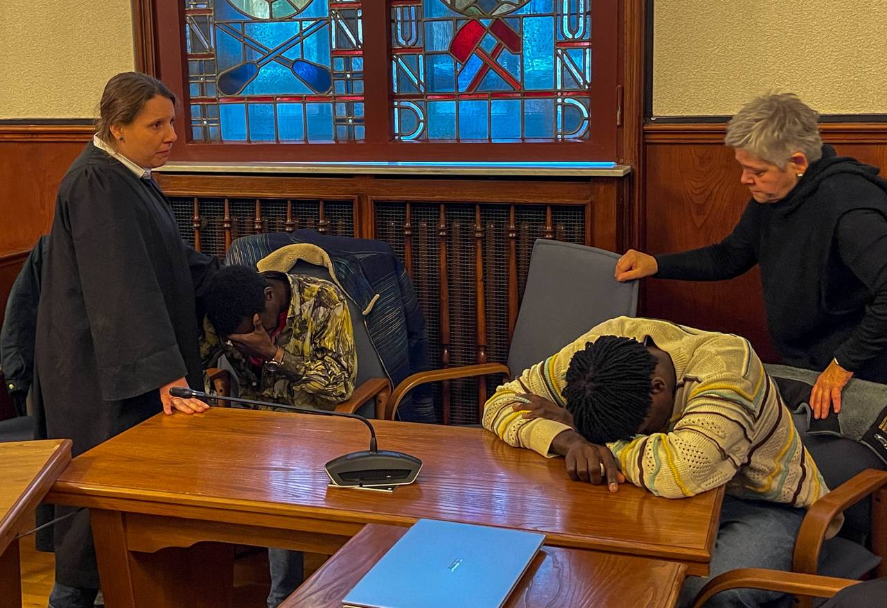 Das Foto hält die Emotionalität eines Augenblicks fest. Die Körperhaltung der beiden Brüder spricht eine eindringliche Sprache. Der eine vergräbt sein Gesicht in den Händen, der andere bricht zusammen, den Kopf auf den Tisch gelegt. Beides sind Haltungen, die kein Wort erklären muss. In diesem Moment verdichtet sich der Verlust ihres Bruders Mouhamed Dramé. Die Fotografie hält diese Realität fest, ohne sie auszubeuten. Sie erlaubt einen Blick, der empathisch ist, nicht voyeuristisch. Die Szene ist eingefasst vom schweren Holz des Gerichtssaals und den farbigen Glasfenstern im Hintergrund – Symbole staatlicher Ordnung, die hier in einem scharfen Kontrast zu den Gefühlen im Vordergrund stehen. Dieses Foto ist ein Beispiel dafür, was Pressefotografie im Kern leisten kann: Sie macht die gesellschaftliche Bedeutung eines Prozesses sichtbar – und gleichzeitig die menschliche Tragweite, die oft dahintersteht.