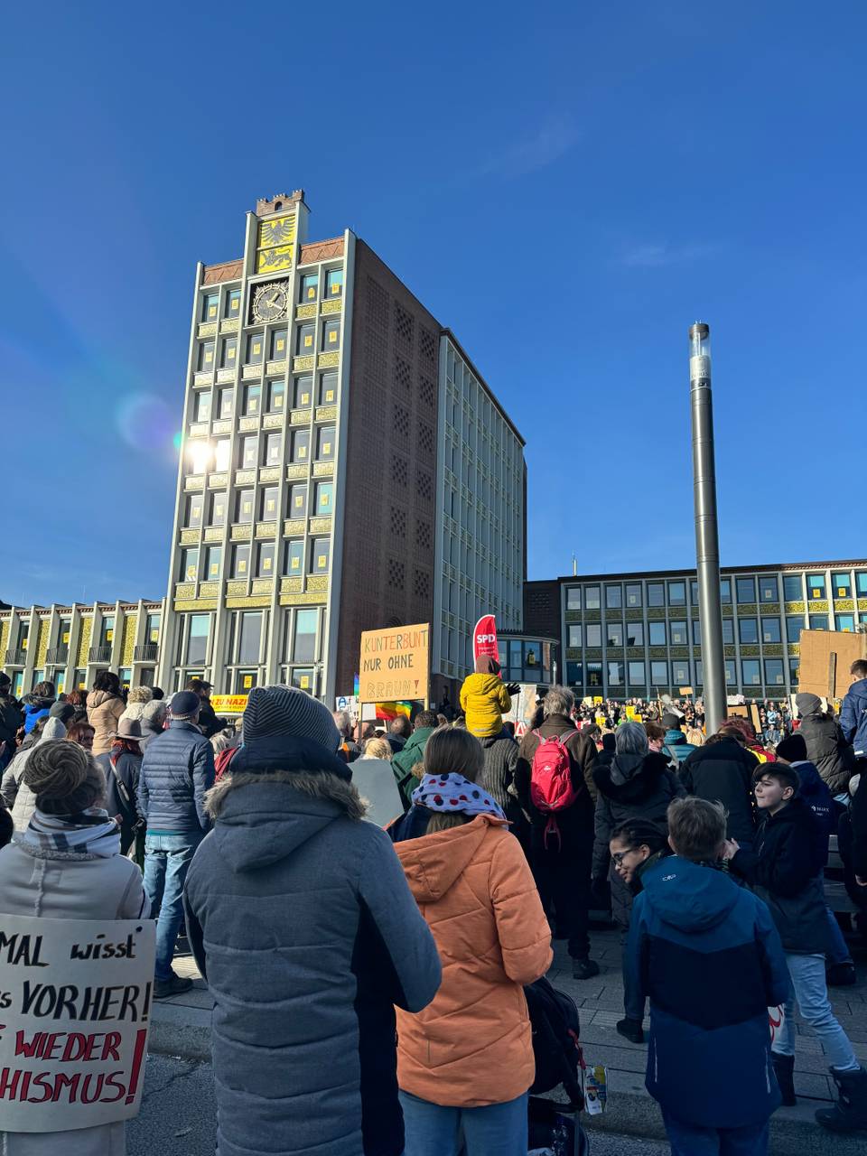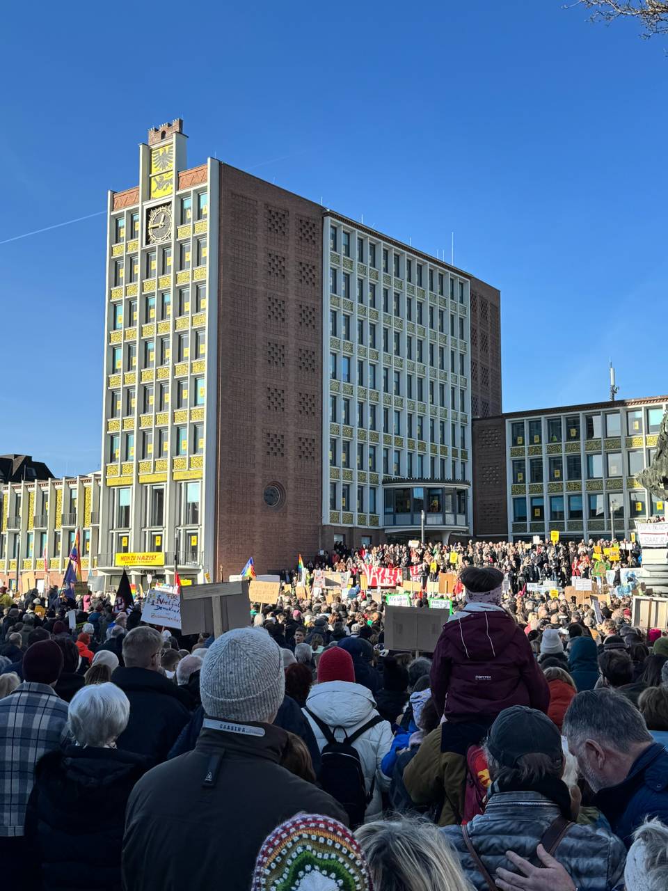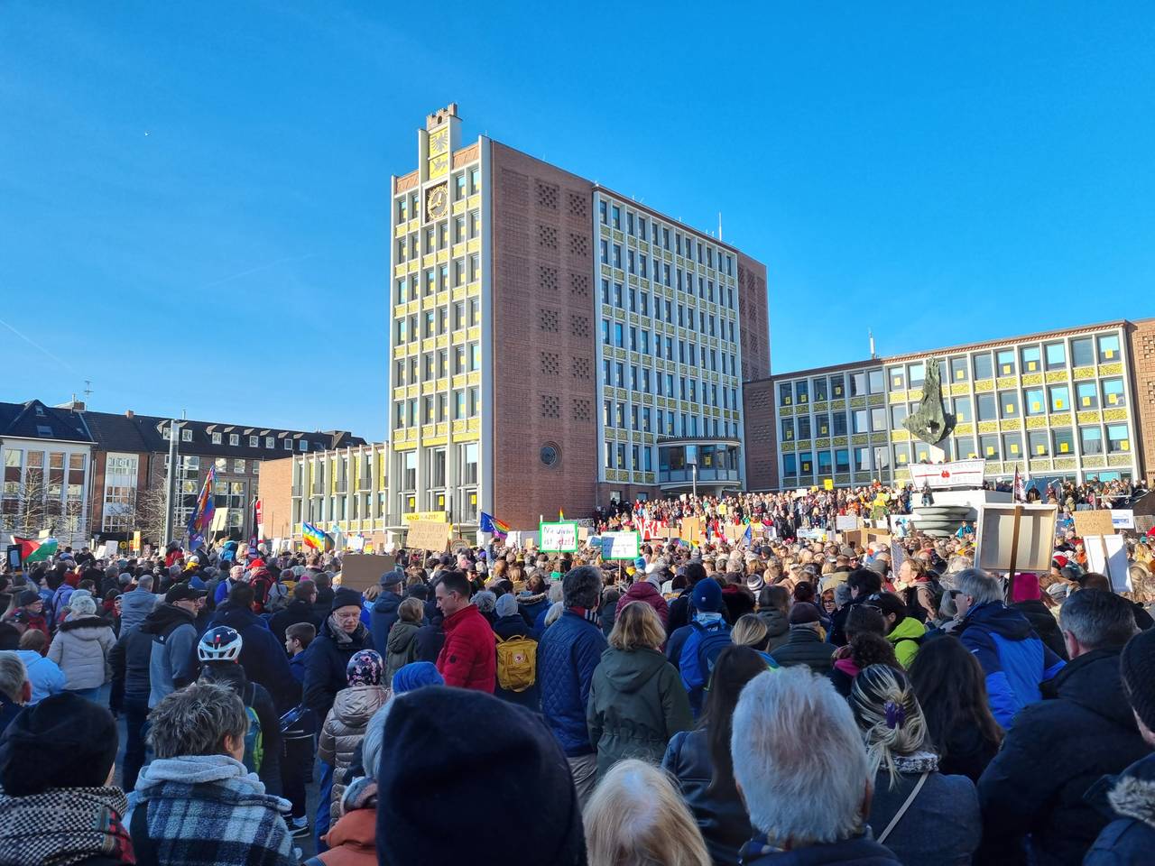 In Düren haben am Samstagmittag tausende Teilnehmer für die Demokratie und gegen Rechts demonstriert. Es gab eine Kundgebung auf dem Kaiserplatz. Nach Schätzungen der Polizei waren zeitweise bis zu 5000 Teilnehmer dort.