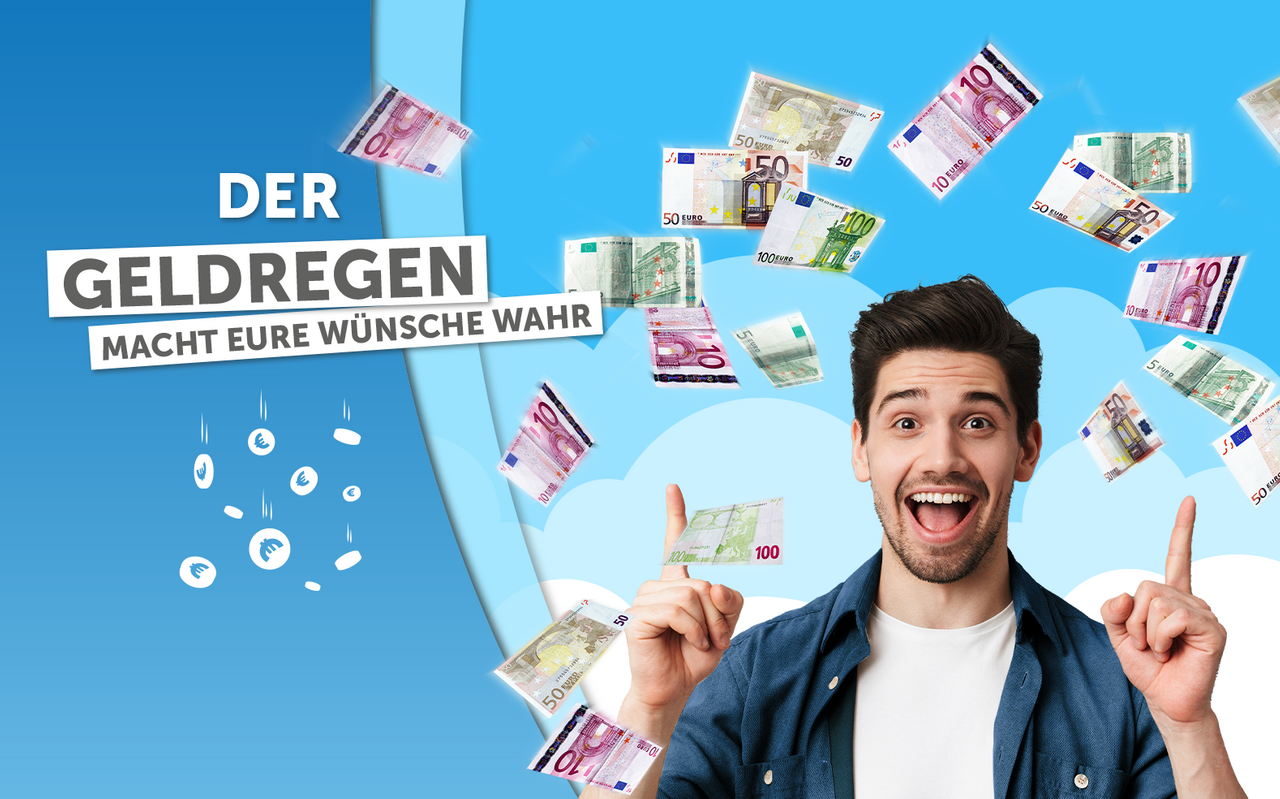 Das beliebteste Radiogewinnspiel ist wieder da: Ihr hört Radio und lasst euch mit etwas Glück euer Konto durch den Geldregen auffüllen. Wir stellen euch wieder in den Geldregen und ermöglichen euch euren Traumurlaub, die anstehende Renovierung oder die Spielekonsole, die ihr schon lange haben wollt. Ihr bewerbt euch telefonisch für die jeweils aktuelle Spielrunde: