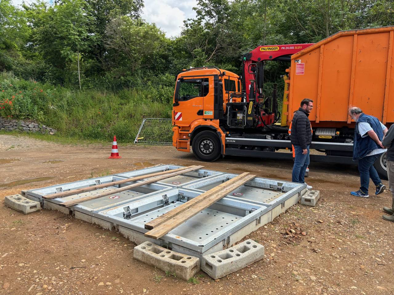 In der Klimaschutz-Siedlung PrymPark im Süden von Düren wird erstmalig ein Unterflur-Müllsystem gebaut. Die entsprechenden Container dafür sind heute geliefert worden.