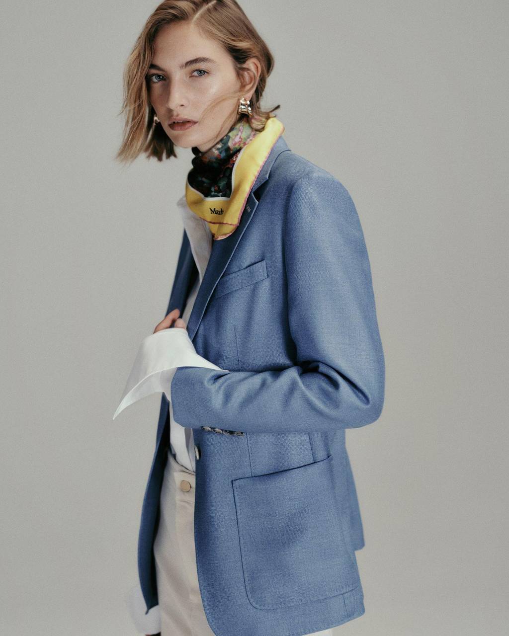 Bringt Schick und Farbe ins Outfit: das klassische Seidentuch. Hier ein Beispiel von Max Mara (Seidentuch ca. 365 Euro, Blazer ca. 1.725 Euro). © Max Mara/dpa-tmn
