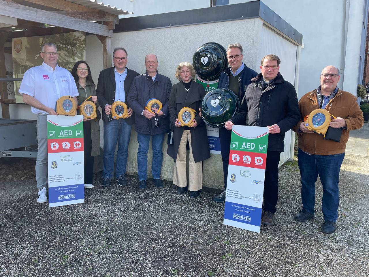 In Vettweiß-Kelz ist heute der erste neue Defibrillator in der Kirchstraße offiziell eingeweiht worden. Er ist einer von insgesamt 16 neuen Defis in der gesamten Gemeinde.