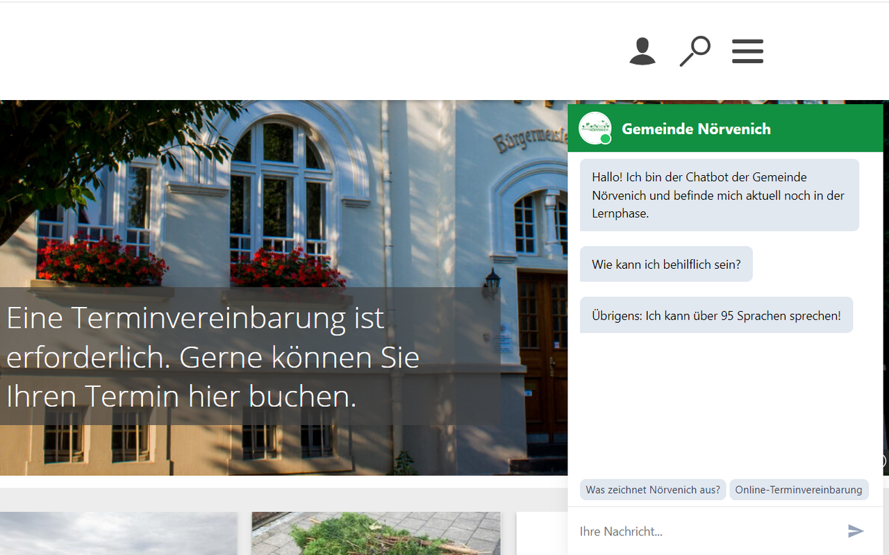 Er spricht 95 Sprachen fließend und steht ab sofort rund um die Uhr für Antworten zur Verfügung: Gemeint ist der KI-gestützte ChatBot der Gemeindeverwaltung Nörvenich.