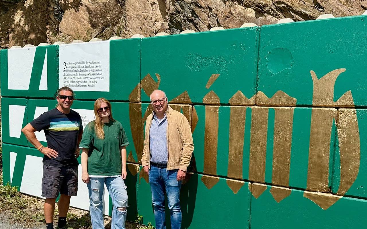 Heute steht das Kunstprojekt mobiler Jugendarbeit aus Heimbach und Nideggen vor dem Abschluss. Nach zwei Wochen. Davor waren es nur zwei graue Betonwände, die den Ruruferradweg vor abstürzenden Felsbrocken und mehr absichern sollten. Dirk Boltersdorf, Jugendsozialarbeiter in Heimbach: