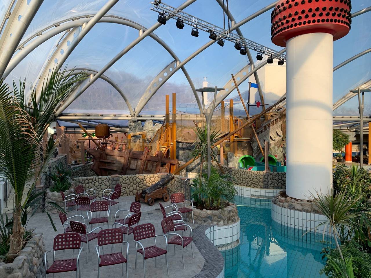 In den vergangenen Monaten wurden Böden ausgetauscht und die Umkleiden erneuert. Herzstück der Arbeiten war der neue Familien- und Kinderbereich. In einer neu geschaffenen Spiellandschaft steht ein Piratenschiff, das zum Spielen einlädt. Das Bad soll heute um zehn Uhr wieder seinen regulären Betrieb aufnehmen. In den letzten Tagen haben Handwerker und Monte-Mare Mitarbeiter zum Teil rund um die Uhr gearbeitet um mit Allem fertig zu werden.