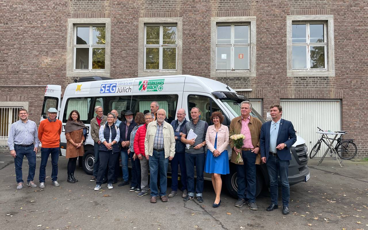 Letztes Jahr im April ist der alte Bürgerbus gestohlen worden. Übergangsweise wurde dann ein kleinerer Ersatzbus angeschafft. Das neue Fahrzeug löst ein großes Problem des Übergangsbusses, so Klaus Krüger vom Bürgerbus Jülich e.V.. Jetzt sei mehr Platz für Fahrgäste und beispielsweise auch Rollatoren. Der neue Jülicher Bürgerbus ist durch das Land NRW mit 35.000 Euro gefördert worden. Der Restbetrag wurde durch Spendengeldern finanziert.