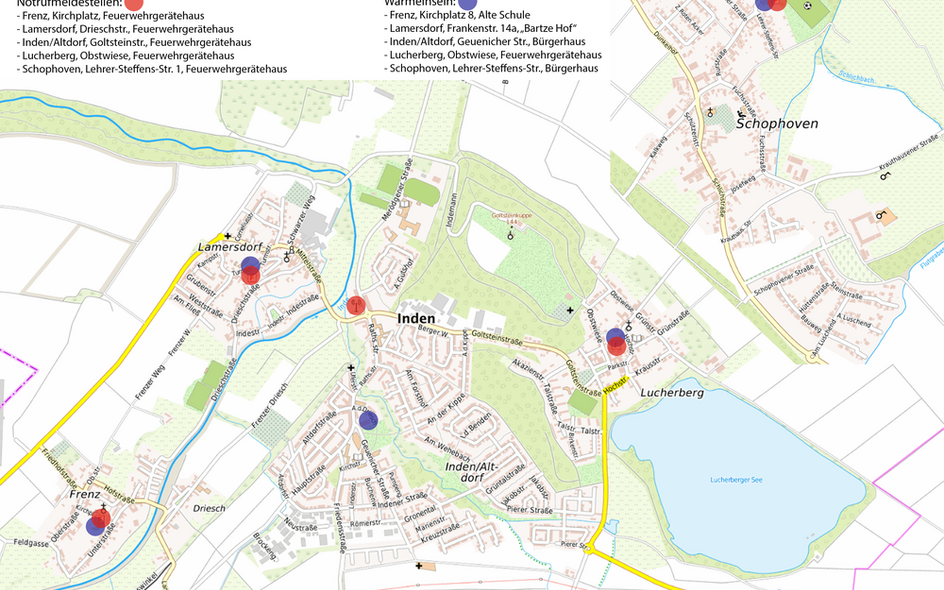 Zunächst wurde sich mit den Versorgungsunternehmen kurzgeschlossen und diese halten so ein Szenario eher für unwahrscheinlich. Trotz alledem ist man auf den Notfall vorbereitet. Die Feuerwehrgerätehäuser der Kommune dienen als sogenannte "Leuchttürme". Hier können Bürger im Ernstfall einen Notruf absetzten. Außerdem können durch den Stab für außergewöhnliche Ereignisse in Inden "Wärmeinseln" aktiviert werden. Bürger können sich dort wärmen und gemeinsam austauschen.