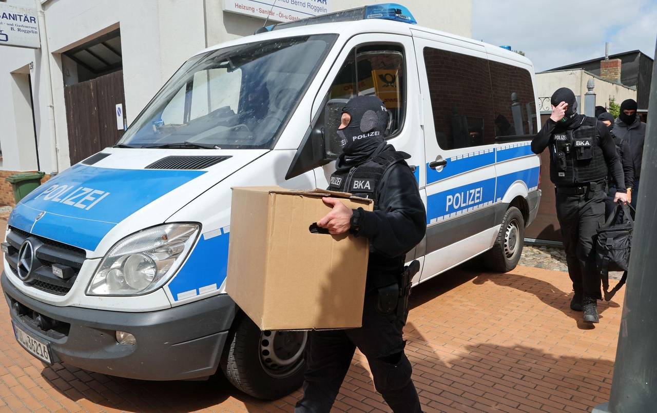 Die Polizei durchsuchte im Mai 2025 Gebäude in mehreren Bundesländern. (Archivbild)© Bernd Wüstneck/dpa