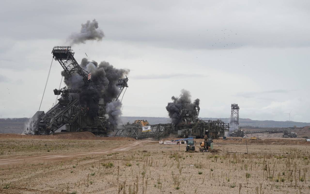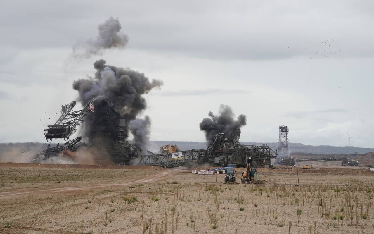 Schaufelradbagger im Tagebau Hambach gesprengt