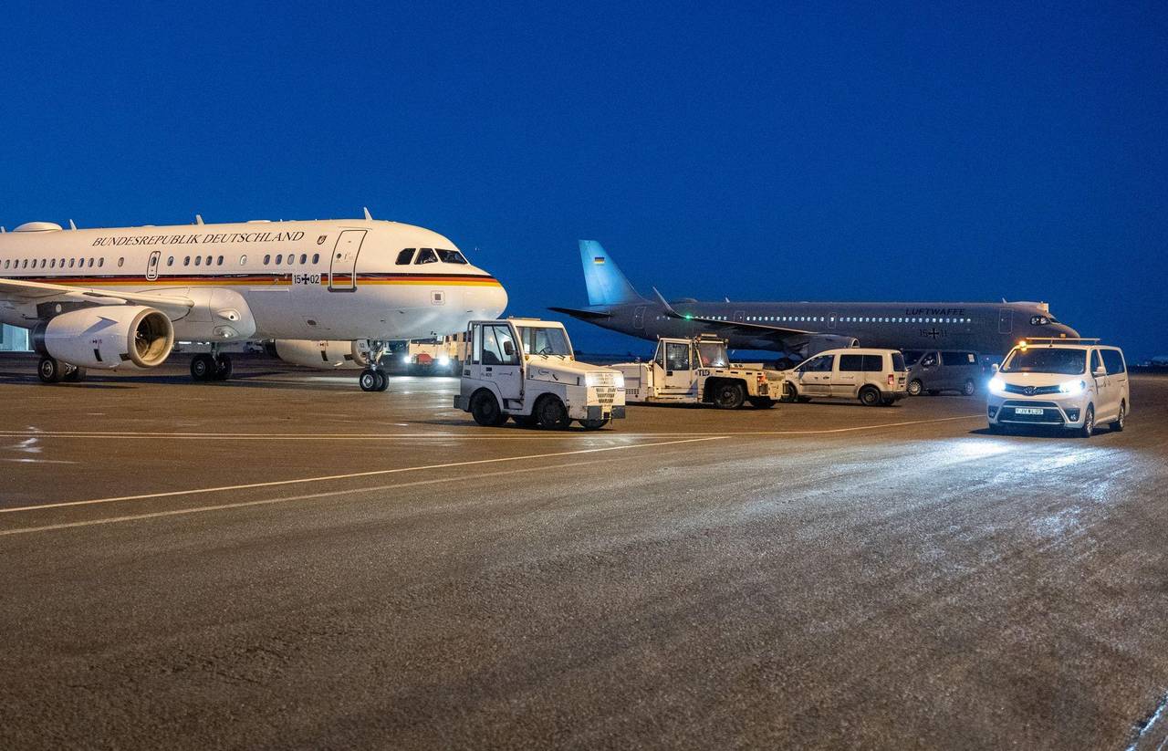 Das Flugzeug (hinten) von Außenminister Wadephul (CDU) steht neben dem Airbus A319 von Bundesfinanzminister Klingbeil (SPD).