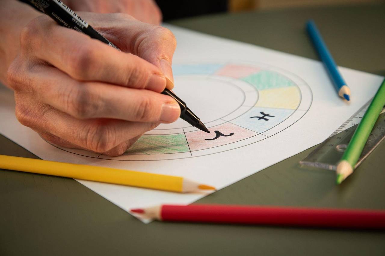 Eine Frau fertigt ein Astrologiechart an